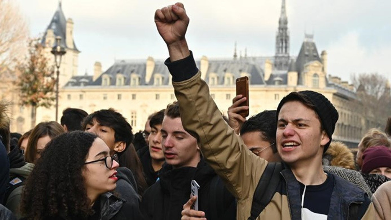 "Kara salı" adı verilen eylemde, başkent Paris'in Saint-Michel meydanında toplanan yüzlerce öğrenci, kentin çeşitli sokaklarında yürüdü. Polis, öğrencilerin Eğitim Bakanlığının olduğu caddeye girmesine izin vermedi.