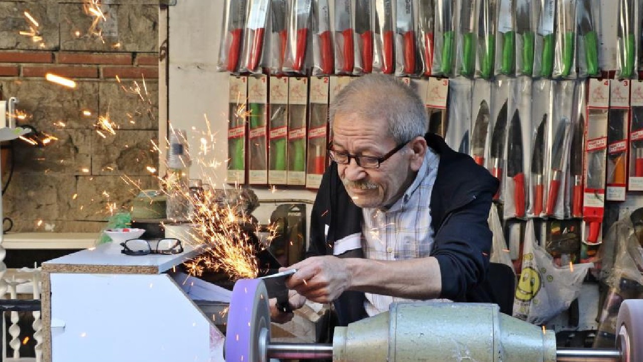 Antalya’da 7. kuşak bıçak bileme ustası Mehmet Şakar, dededen toruna aktarılan mesleğini 50 yıldır sürdürüyor. Günde 12 saat çalışmasına ve 50–60 bin lira maaş teklifine rağmen çırak bulamamaktan yakınıyor.