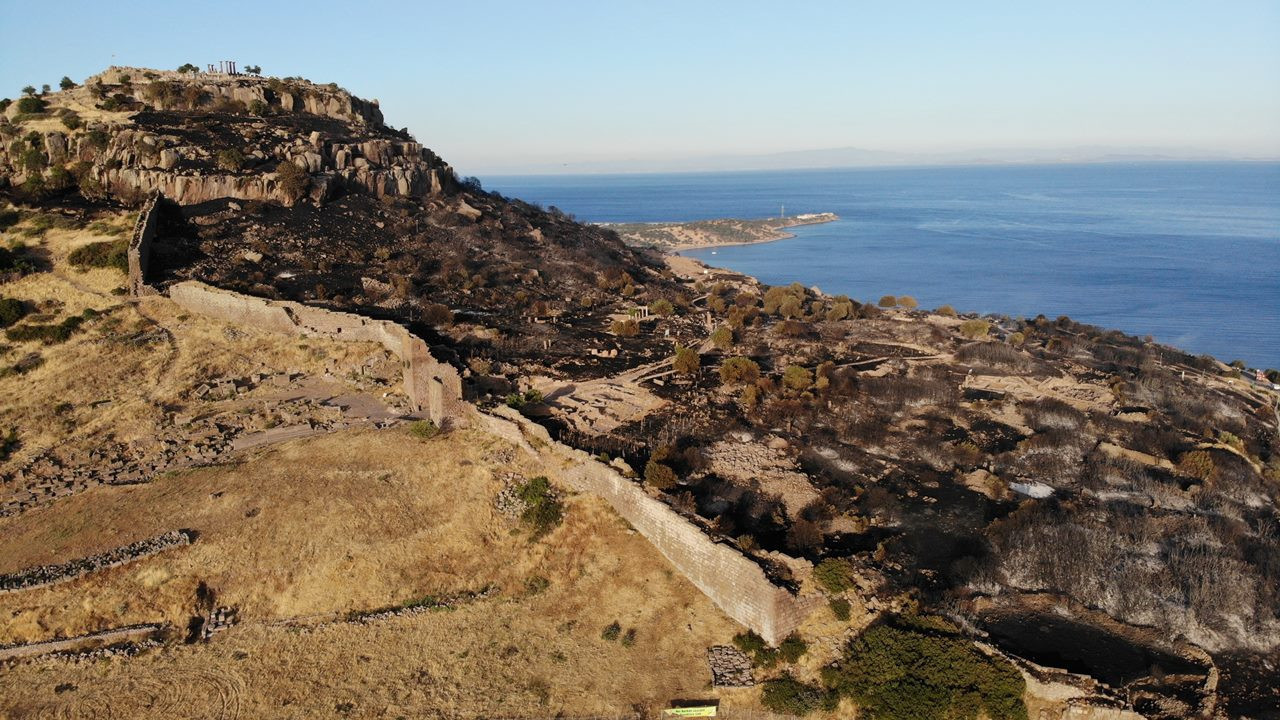 Çanakkale'nin Ayvacık ilçesinde Assos Ören Yeri ve Athena Tapınağı'nın da alevlerden etkilendiği yangında 43 futbol sahası büyüklüğünde alan zarar gördü. Altı saatte kontrole alınabilen yangının yarattığı tahribat havadan görüntülendi.