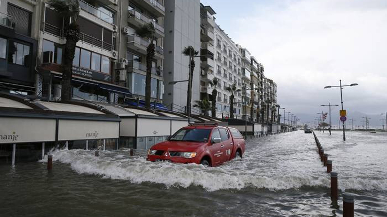 Sabah saatlerinden itibaren kentte etkili olan fırtına yaşamı olumsuz etkiliyor. Denizin taşması sonucu 1. Kordon, Gündoğdu Meydanı, Cumhuriyet Bulvarı'nda su taşkınları oluştu.