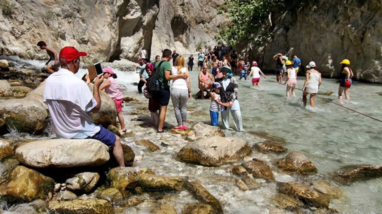 Kayadibi Mahallesi'ndeki Saklıkent Milli Parkı'na gelen turistler, 18 kilometrelik kanyonda farklı bir deneyim yaşama fırsatı buluyor.