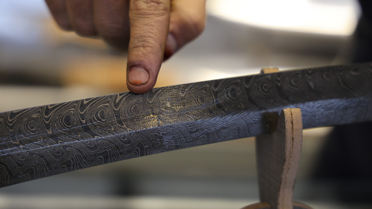 Damarlı görüntüsü, esnek ve keskin yapısı öne çıkan ve görüntüsü ile dikkat çeken kılıç, tamamen el emeği ile 11 günde üretildi.