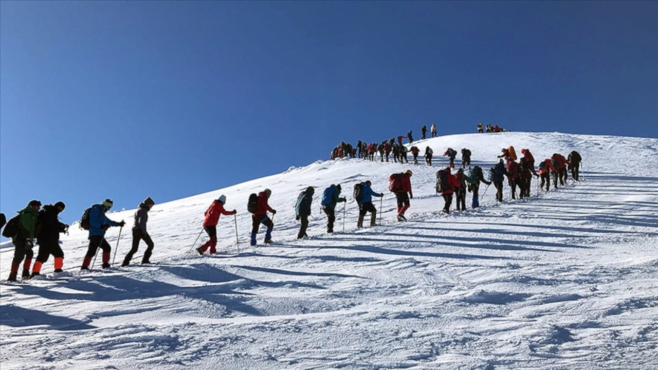 Kars'ın Sarıkamış ilçesinde bir araya gelen 63 dağcı, Sarıkamış Harekatı'nda şehit olanları anmak için 3 bin 180 rakımlı Allahuekber Dağı'na zirve tırmanışı başlattı.