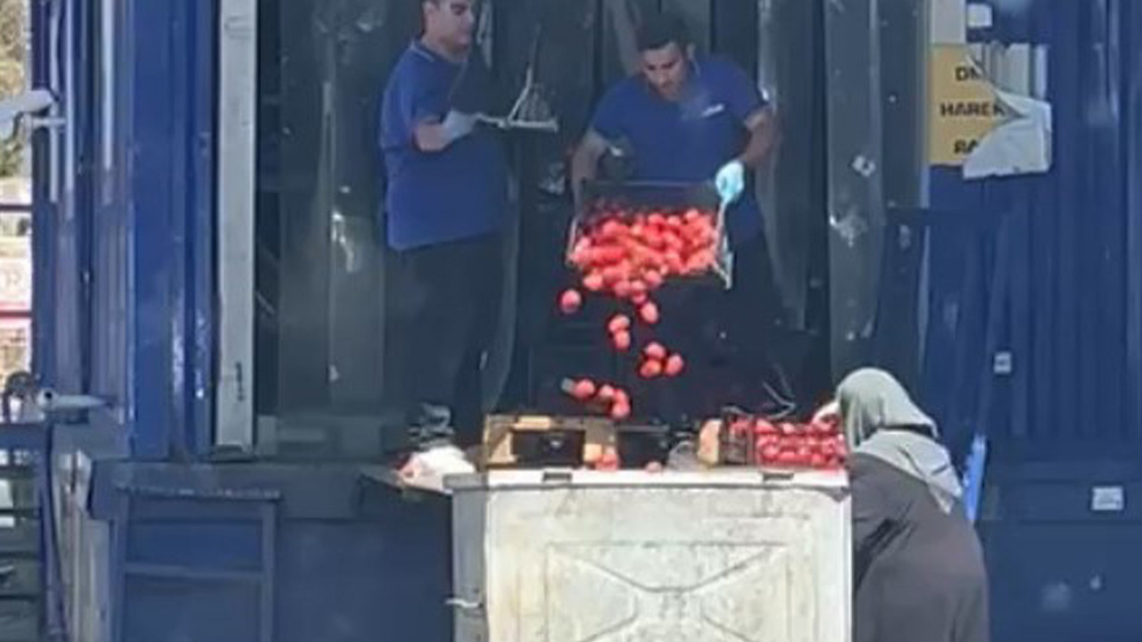 Öte yandan, olay esnada çevrede bulunan bir vatandaşın çöpe atılan domatesleri almaya çalıştığı görüldü.