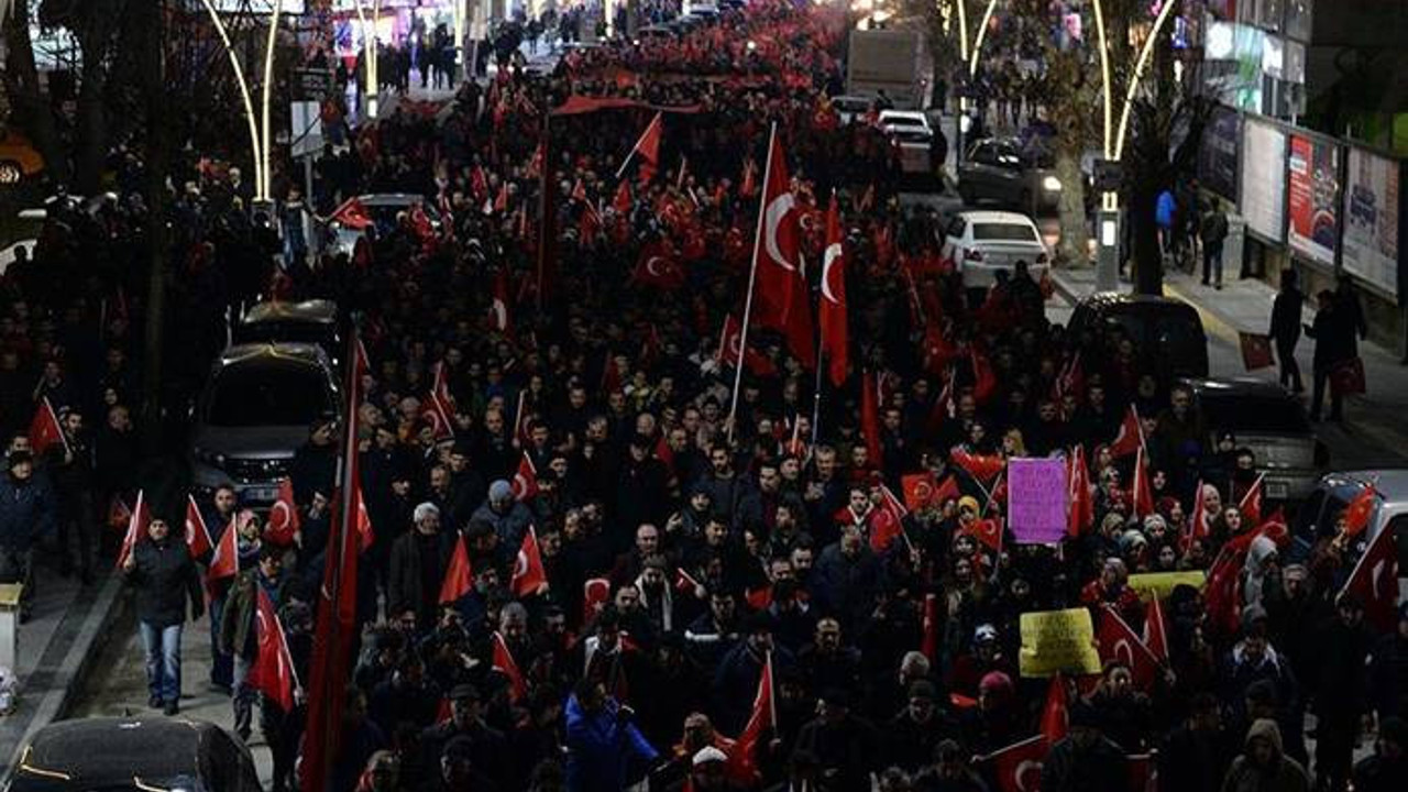 Ellerinde Türk bayrakları ve dövizlerle Gaziosmanpaşa Bulvarı'ndaki Ali Paşa Camisi'ne doğru yürüyen vatandaşlar, "Polise uzanan eller kırılsın" ve "Şehitler ölmez vatan bölünmez" şeklinde slogan attı.