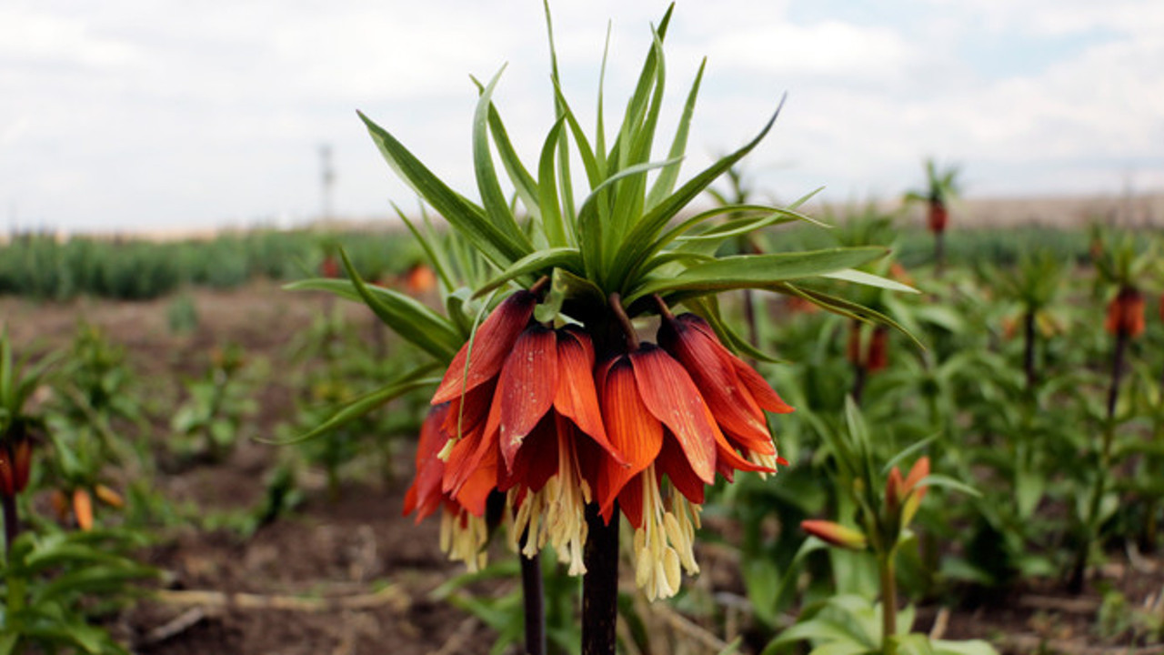 Doğu ve Güneydoğu Anadolu bölgelerinin bazı kesimlerinde doğal şekilde yetişen, "ağlayan gelin" olarak nitelendirilen ters laleler, üretiminin yapıldığı Karacadağ eteklerinde baharın gelişiyle çiçek açtı.
