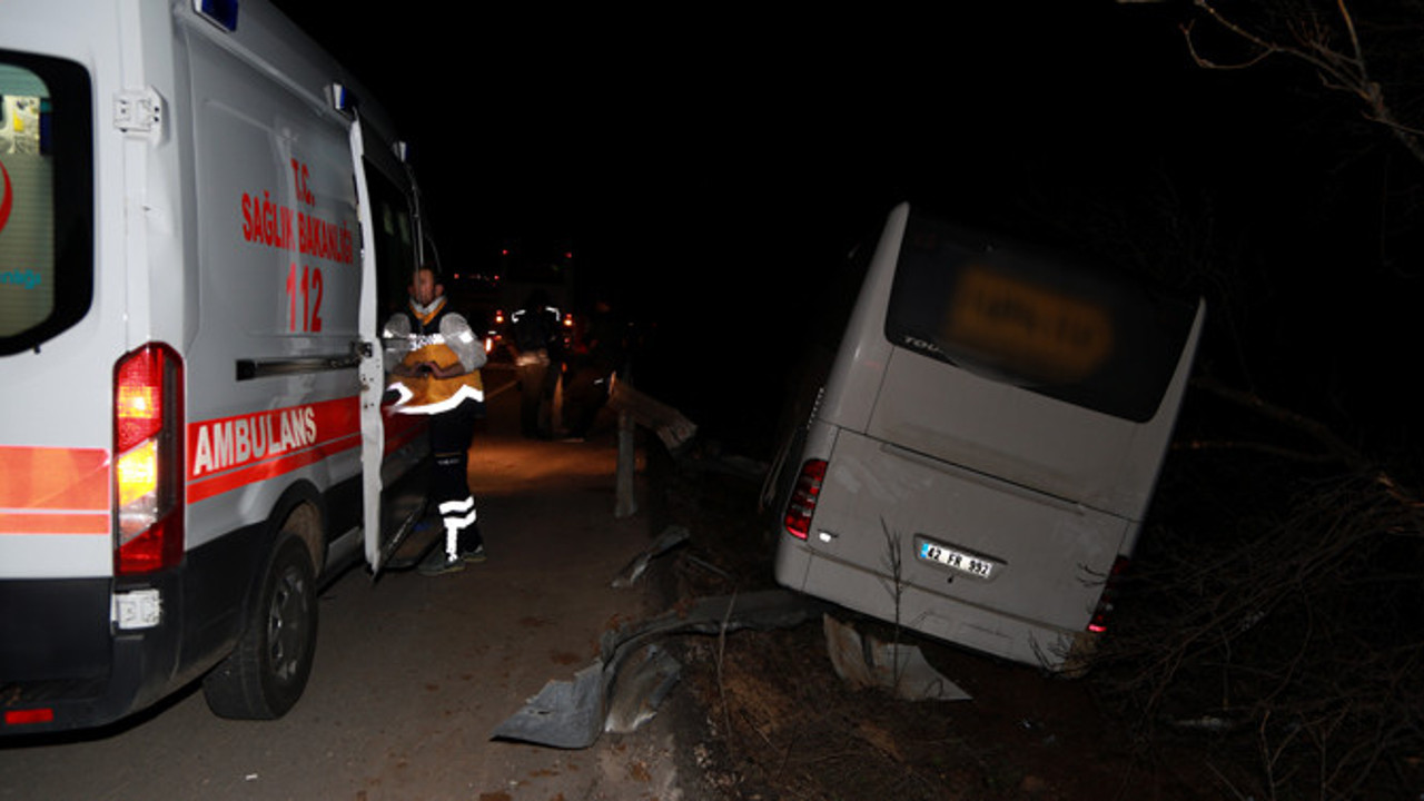 Konya'da tur otobüsünün şarampole devrilmesi sonucu 14 kişi yaralandı. Kazanın, sürücünün aniden yola çıkan köpeğe çarpmamak için manevra yapması sonucu meydana geldiği öğrenildi.