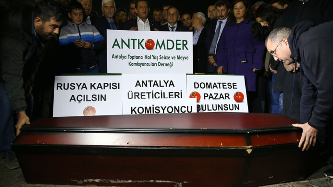 Antalya Toptancı Hali'nde oda, dernek başkanları, çiftçiler ve komisyoncular, domateste fiyatın düşük, girdi maliyetlerinin yüksek olmasını protesto etti.