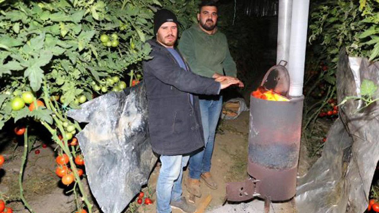 Antalya'da hava sıcaklığının sıfırın altında 2 dereceye kadar düşmesi ve meteorolojinin 'don uyarısı'nda bulunması üzerine çiftçiler seralarda soba yakarak sabaha kadar nöbet tuttu.