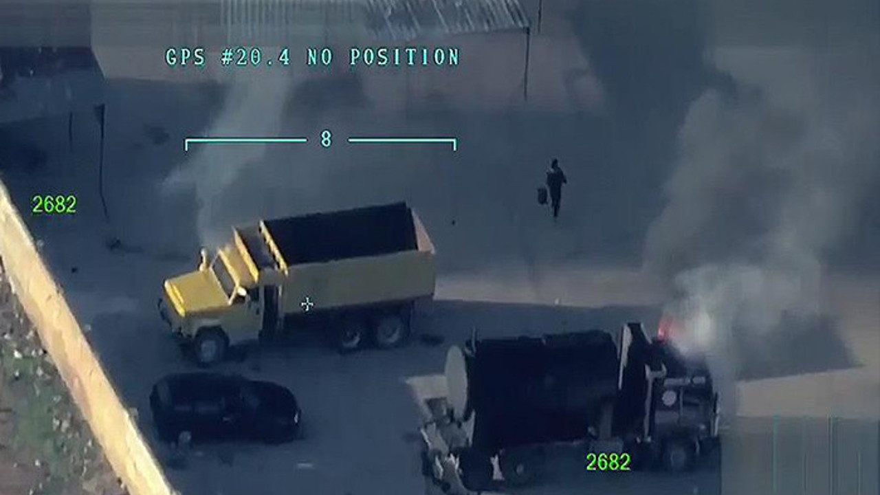 Terör örgütü YPG/PKK mensuplarının Afrin merkezde araçları ateşe verdiği anlar, Türk Silahlı Kuvvetlerine ait insansız hava araçları (İHA) tarafından görüntülendi.
