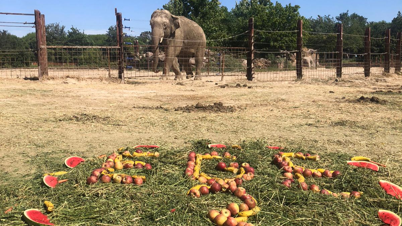 İzmir Doğal Yaşam Parkı'nda dünyaya gelen 'Ege' isimli filin 3. yaş günü kutlandı.